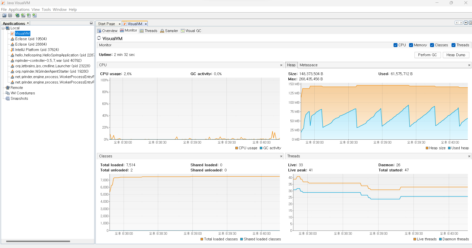 jmx로 모니터링 할때는 동일한 환경에서 진행이 되어야 정확한 지표를 확인할 수 가 있다.