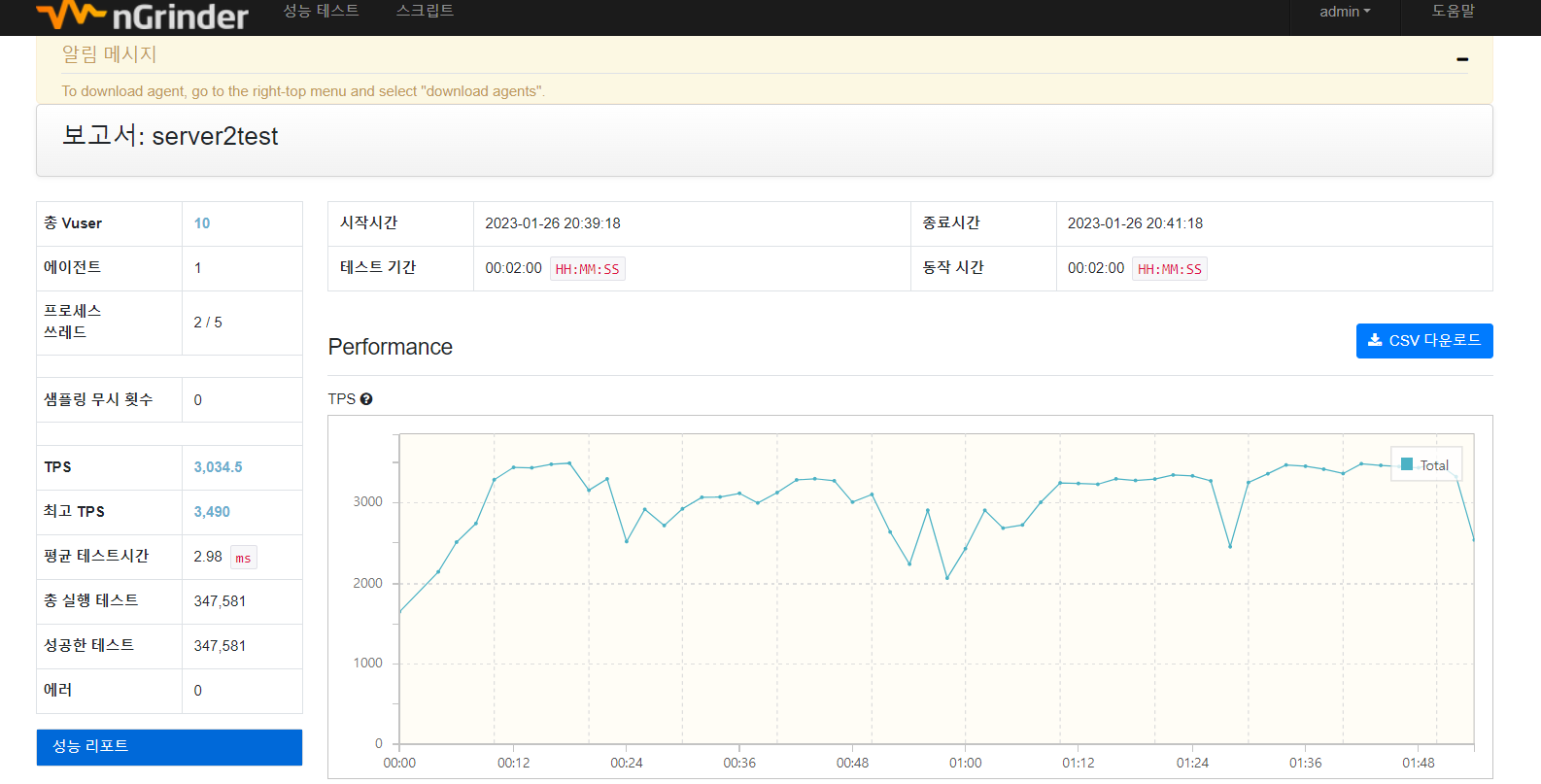 TPS (Transaction Per Second) :초당 처리량 높을수록 좋다.