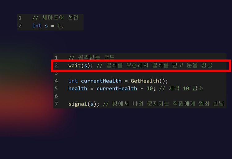 2.공격 받는 코드에서도 wati 함수를 호출했지만 열쇠가 없어서 기다린다, 다음 코드가 실행되지 않고 멈춰있게 된다.