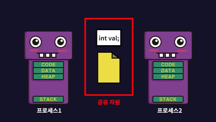 프로세스간 통신을 할떄 공동으로 이용하는 변수나 파일이 있는데 그것을 공유자원이라고 한다.