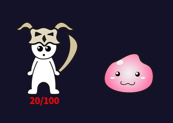 케릭터 : 총체력 100인데 현재 체력은 20 인 상황 (20/100)