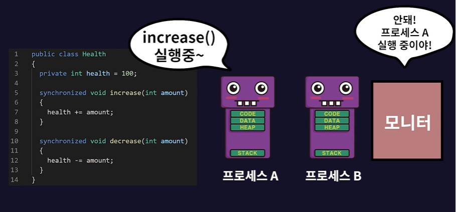 이것을 해결하기 위해 "모니터" 라는 방법이 있다.