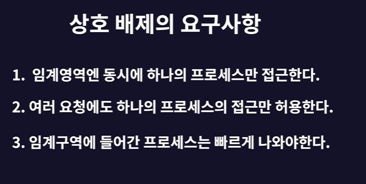 따라서 ! 여러 프로세스가 동시에 사용하면 안되는 영역 정의 "임계구역(Critical Section)" 을 말한다 .