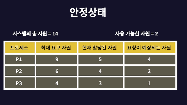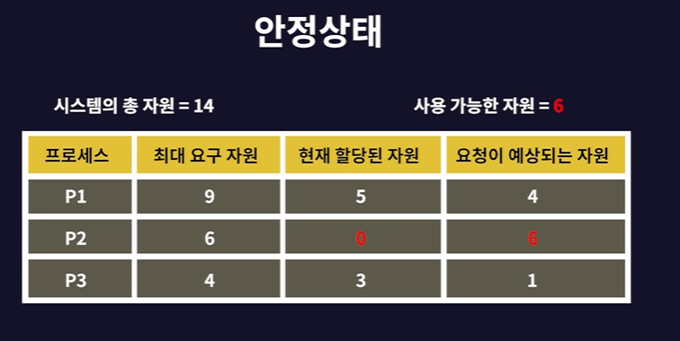 가지고 프로세스들의 요청이 예상되는 자원을 제공 할수 있따,