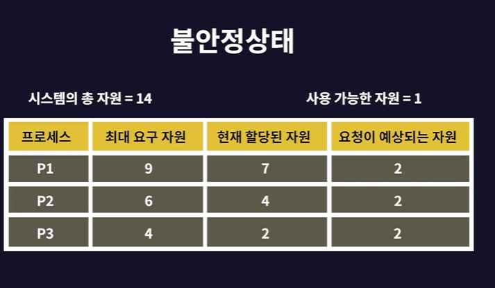 불안정 상태에있더라도 교착상태에 무조건 빠지는것이 아니라 확률이 높아지는 것이다.