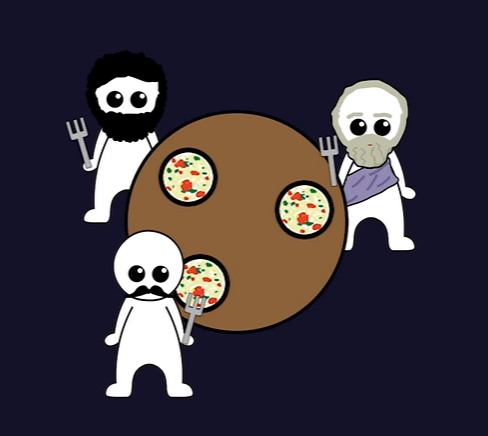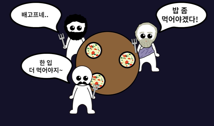 우연히 철학자 세명이 동시에 포크를 쥐었다