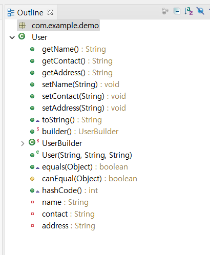@Builder//이름, 전화번호, 주소를 개별적으로 사용가능(필요한것만 가져와서 사용)