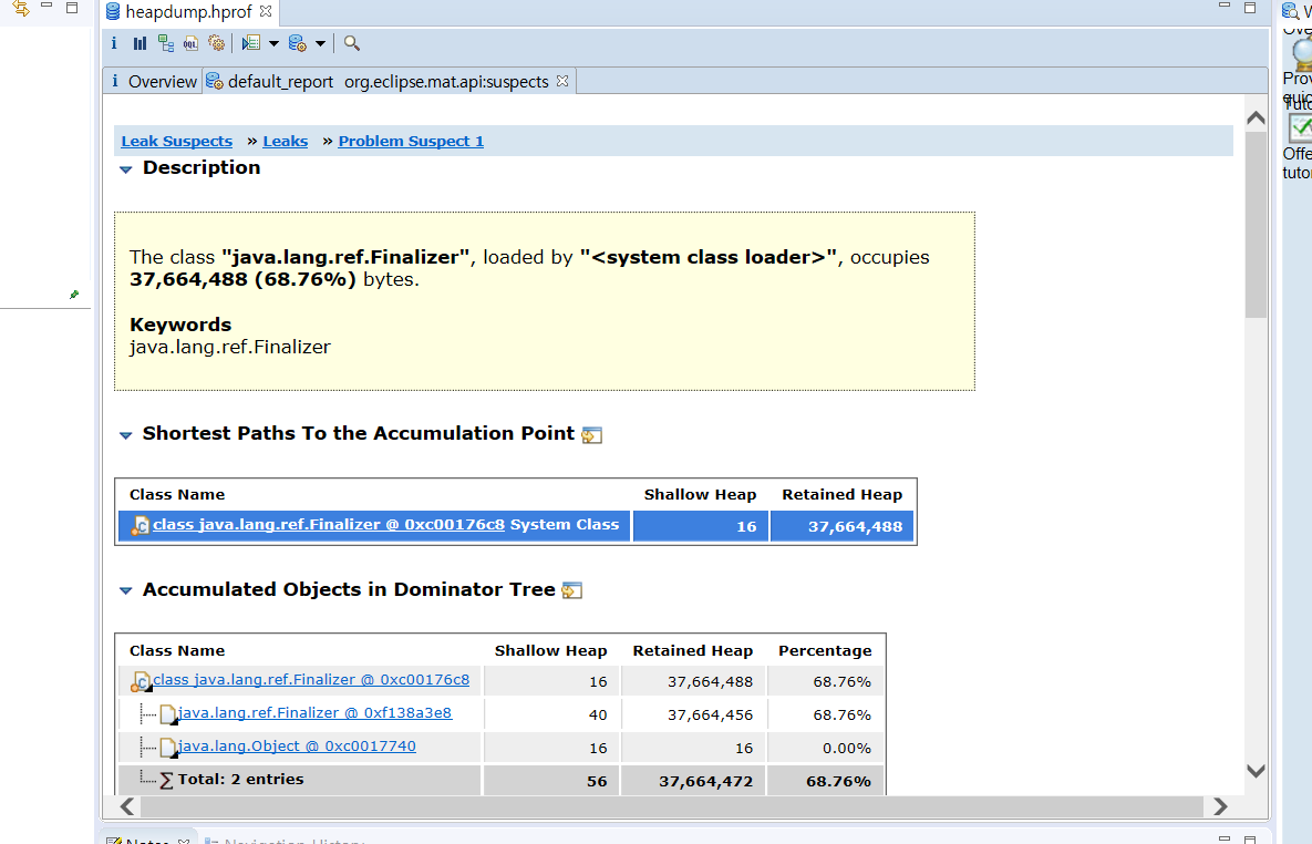생성된 Heap Dump 파일을 분석하는 여러 방법이 있겠지만, 그중에서 Eclipse Memory Analyzer(MAT) 툴을 이용하여 분석해보자.